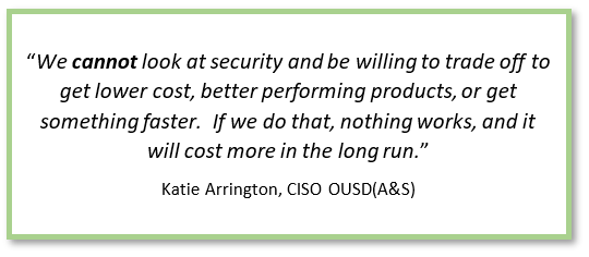 We cannot look at security and be willing to trade off to get lower cost, better performing products, or get something faster.  If we do that, nothing works, and it will cost more in the long run.