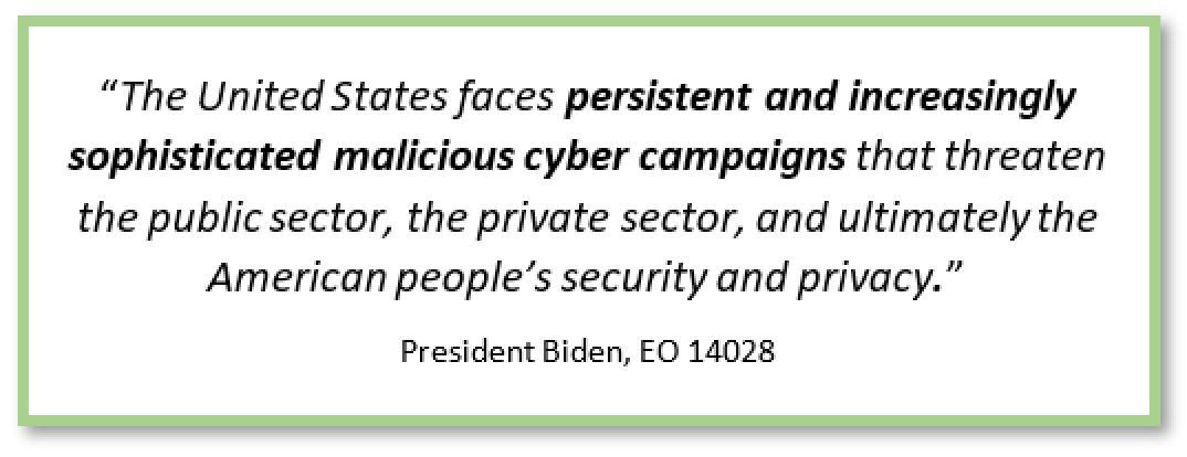The United States faces persistent and increasingly sophisticated malicious cyber campaigns that threaten the public sector, the privates sector, and ultimately the American people's security and privacy.
